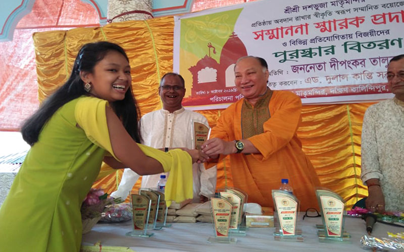 পরে তিনি দশভূজা মাতৃমন্দির কতৃক আয়োজিত বিভিন্ন প্রতিযোগিতায় বিজয়ীদের মাঝে পুরষ্কার বিতরণ করেন এবং মন্দির কমিটিতে যারা বিগত সময়ে দায়িত্ব পালন করেছেন তাদের হাতে সম্মাননা স্মারক তুলে দেন।
