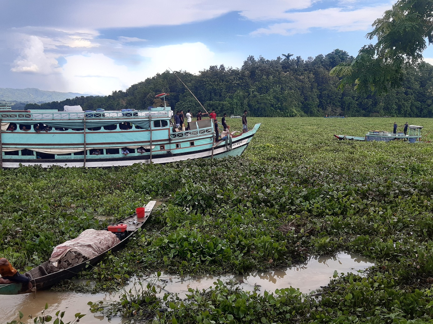কাপ্তাই হ্রদে কচুরিপানায় নৌ যোগাযোগ মারাত্মকভাবে ব্যাহত হচ্ছে। প্রতিবছর বর্ষায় কমবেশি এই সমস্যা থাকলেও এবছর মাত্রাতিরিক্ত এই সমস্যা দেখা দিয়েছে। কচুরিপানার কারণে স্বাভাবিক নৌ চলাচল যেমন ব্যাহত হচ্ছে, তেমনি জেলেদের হ্রদে জাল ফেলতেও সমস্যা দেখা দিচ্ছে। আবার কচুরিপানাগুলো ভেসে পাড়ে চলে আসার পর ছোট ছোট ইঞ্জিনচালিত বোটগুলো তীরে ভিড়তে বেগ পেতে হচ্ছে। এছাড়া গোসলসহ নিত্যকাজে হ্রদের পানি ব্যবহারকারীদের পড়তে হচ্ছে বিড়ম্বনা। বছরের পর বছর হ্রদের কচুরিপানার জঞ্জাল বড় হলেও এই জঞ্জাল পরিষ্কারের দায়িত্ব কার এই বিষয়ে জানা নেই হ্রদসংশ্লিষ্ট কোনও প্রতিষ্ঠানের। হ্রদ ব্যবহার করে সব প্রতিষ্ঠানই রাজস্ব আয় করলেও হ্রদের কচুরিপানা পরিষ্কার করতে এককভাবে দায়িত্ব নিতে রাজি হচ্ছেন না কেউ। তবে হ্রদের সাথে যুক্ত বিভিন্ন প্রতিষ্ঠানের কর্তাব্যক্তিরা জানিয়েছেন, সমন্বিত উদ্যোগের মাধ্যমে একমাত্র এর সমস্যার সমাধান সম্ভব।