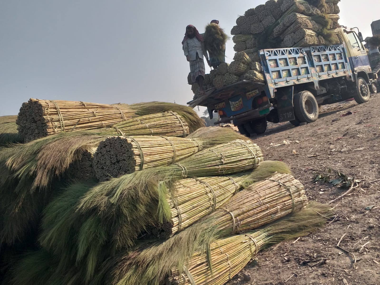কথা হয় স্থানীয় শ্রমিক হারুন এবং হাশেম এর সাথে। তাঁরা জানান, আমরা দীর্ঘ ১০ বছর ধরে একাজের সাথে জড়িত। প্রতিবছরই তাঁরা এই মৌসুমে ফুলের ঝাড়ু পরিবহনে কাজ করে আসছেন। দৈনিক ৫শত টাকা মজুরিতে পাইকার ব্যবসায়ীদের মাধ্যমে ফুলের ঝাড়ু ট্রাকে উঠানোর কাজে সহযোগিতা করেন তাঁরা সহ আরোও ৩০ জন শ্রমিক। প্রতিদিনই এই নৌ পথে ফুলঝাড়ু জেটিঘাটে আসলেও সপ্তাহের শনিবার সাপ্তাহিক হাটে বেশী ব্যস্ত থাকতে হয় তাদের। এদিন ভোর থেকে শুরু করে রাত পর্যন্ত ঝাড়ু সরবারহ কাজে ব্যস্ত সময় পাড় করেন তারা।