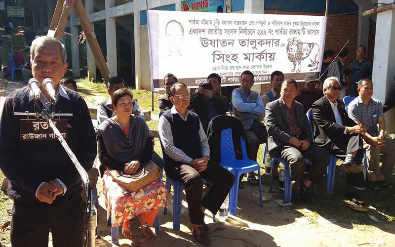 তিনি আরো বলেন, সুষ্ঠু নির্বাচন হলে আমরা হেরে গেলেও কোনও কিছু বলবো না। কিন্তু জোরজবরদস্তি করে ভোট কারচুপির চেষ্টা করলে তা প্রতিহত করা হবে। তিনি সুষ্ঠুভাবে নির্বাচন সম্পন্নের জন্য নির্বাচন কমিশনকে আহ্বান জানান। তিনি বলেন, শান্তি চুক্তির পূর্ণাঙ্গ বাস্তবায়নের আন্দোলন বেগবান করার লক্ষ্যে জনসংহতি সমিতির প্রতিনিধিকে সংসদে কথা বলতে হবে। এজন্য সিংহ মার্কায় ভোট দিয়ে চুক্তির বাস্তবায়নের আন্দোলন বেগবান করার আহ্বান জানান ঊষাতন তালুকদার।