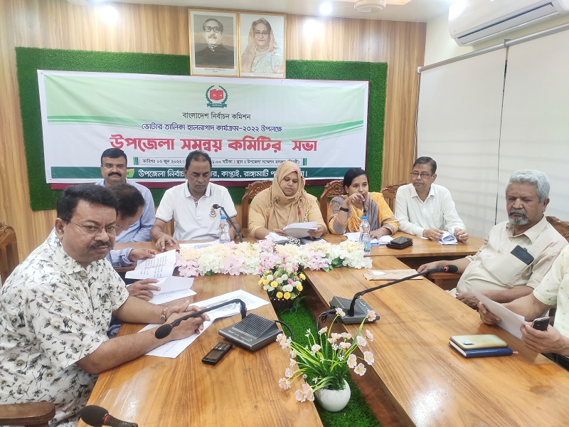 কাপ্তাই উপজেলা নির্বাচন কর্মকর্তা তানিয়া আক্তার সভার শুরুতে জানান, আগামী ৯ জুন হতে ২৯ জুন ২০২২ পর্যন্ত কাপ্তাই উপজেলার পাঁচটি ইউনিয়নে বাড়ি বাড়ি গিয়ে ছবিসহ ভোটার তালিকা হালনাগাদ কার্যক্রমের সম্পন্ন করার লক্ষ্যে নির্ধারিত ১৬ সুপারভাইজার এবং ৪৮ জন তথ্য সংগ্রহকারীদের মাধ্যমে তথ্য সংগ্রহ করা হবে এবং ৫ জুলাই হতে ২৩ জুলাই পর্যন্ত সংশ্লিষ্ট ইউনিয়ন পরিষদে ছবি তোলা হবে।