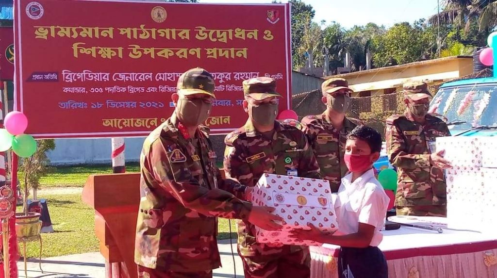 বাংলাদেশ সেনাবাহিনী পার্বত্যাঞ্চলে সেবা ও উন্নয়নমূলক কাজ করে যাচ্ছে। পার্বত্য শান্তি চুক্তির ২৪ বছরে সেনাবাহিনী সকল সম্প্রদায়ের নিরাপত্তা দেওয়ার পাশাপাশি বিভিন্ন উন্নয়ন কাজ করছে। বঙ্গবন্ধুর এই পার্বত্যাঞ্চলের উন্নয়ন নিয়ে স্বপ্ন ছিল। আমরা তার স্বপ্নের বাস্তবায়নে কাজ করছি। রাঙামাটি রিজিয়ন কমান্ডার ব্রিগেডিয়ার জেনারেল মোহাম্মদ ইফতেকুর রহমান পিএসসি শনিবার কাপ্তাই ৫৬ জোনের আয়োজনে ভ্রাম্যমাণ পাঠাগার উদ্বোধন ও শিক্ষা উপকরণ প্রদান অনুষ্ঠানে প্রধান অতিথির বক্তব্যে এসব কথা বলেন।