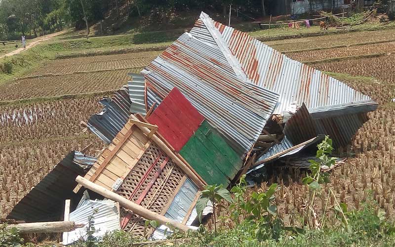মেরুং ইউনিয়ন পরিষদ সদস্য ঘনশ্যাম ত্রিপুরা জানান, ‘ঝড়ো হাওয়ার পর সরেজমিনে দেখে ক্ষতিগ্রস্তদের খসরা তালিকা করেছেন। ৫০টির মতো ঘর ক্ষতিগ্রস্ত হয়েছে, এর বাহিরে রয়েছে আংশিক ক্ষতিগ্রস্তরা, ভেঙেছে অনেক গাছপালা।’