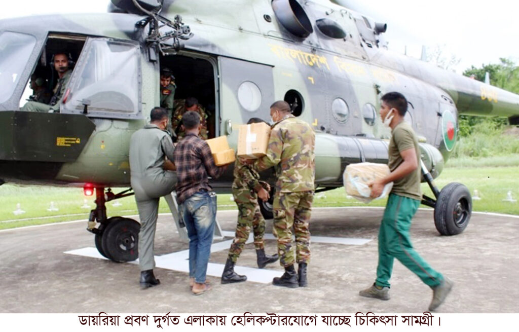 এলাকার স্বাস্থ্য পরিস্থিতির উন্নতি না হওয়াতে জনসাধারণের সুচিকিৎসার জন্য সেনাবাহিনীর ২৪ পদাতিক ডিভিশনের আওতাধীন সদর দপ্তর ৬৯ পদাতিক ব্রিগেডের উদ্যোগে বুধবার জিএসও-২ (ইন্ট)-এর নেতৃত্বে আবারো ওই দুর্গম এলাকায় বিমান বাহিনীর হেলিকপ্টারযোগে জরুরি স্বাস্থ্যপরিস্থিতি মোকাবেলায় বিপুল সংখ্যক জীবনরক্ষাকারী ঔষধ, পানি বিশুদ্ধকরণ ট্যাবলেট, কলেরা স্যালাইন, খাবার স্যালাইনসহ প্রয়োজনীয় অন্যান্য ঔষধ এবং শুকনো খাবার ও বিশুদ্ধ পানি পাঠানো হয়েছে।