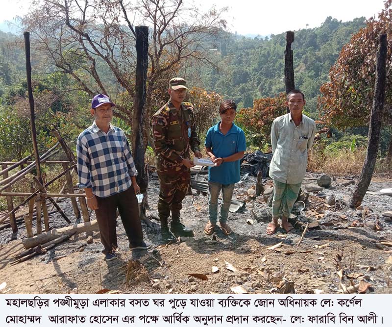 মহালছড়ি জোন সূত্রে জানা গেছে, শান্তি, সম্প্রীতি এবং উন্নয়নের কার্যক্রমের লক্ষ্যকে সমনে রেখে খাগড়াছড়ি রিজিয়ন বিভিন্ন মানবিক সহায়তা কার্যক্রমের অংশ হিসেবে ক্ষতিগ্রস্ত তরুণ জয় ত্রিপুরাকে মহালছড়ি জোনের পক্ষ থেকে ২০ হাজার টাকা অনুদান প্রদান করা হয়।