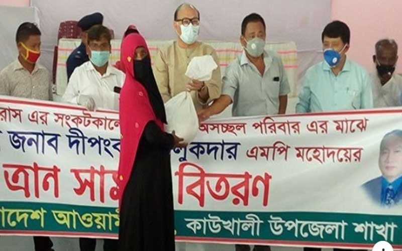 ২ হাজার পরিবারকে আলু, পেঁয়াজ, লবন, তেল ও ডাল কাউখালী উপজেলা আওয়ামীলীগের পক্ষ থেকে এবং চাল রাঙামাটি জেলা পরিষদের পক্ষ থেকে দেয়া হয়েছে বলে জানিয়েছেন উপজেলা আওয়ামীলীগ সভাপতি ও রাঙামাটি পার্বত্য জেলা পরিষদের প্রভাবশালী সদস্য অংসুই প্রু চৌধুরী।