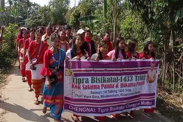 খাগড়াছড়িতে ত্রিপুরাদের নববর্ষ ত্রিং ১৪৩৩ উদযাপন করা হয়েছে। এ উপলক্ষে বৃহস্পতিবার সকালে খাগড়াছড়ি সদরের ভাইবোনছড়া ছোটবাড়ী সরকারি প্রাথমিক বিদ্যালয়ের মাঠ থেকে একটি আনন্দ শোভাযাত্রা বের করা হয়। শোভাযাত্রাটি ভাইবোনছড়া কলেজ হয়ে ভাইবোনছড়া বাজারের ইউনিয়ন পরিষদ কার্যালয় থেকে ঘুরে একই জায়গায় এসে শেষ হয়। পরে সেখানে আলোচনা সভা অনুষ্ঠিত হয়।