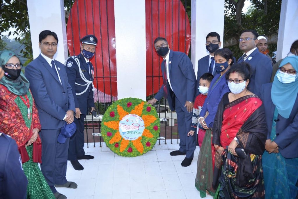 এদিকে দিনের শুরুতে জেলা প্রশাসনের পুষ্পস্তবক অর্পণের পরপরই জেলা পুলিশ, আনসার, বিভিন্ন রাজনৈতিক, সামাজিক, সাংস্কৃতিক ও ক্রীড়া সংগঠন শহীদ মিনারে শ্রদ্ধাঞ্জলি অর্পণ করেন। এই সময়ে সকলেই বিজয়ের ৫০তম বছরে দেশের বিরুদ্ধে অপশক্তি ও মৌলবাদী গোষ্ঠীকে পরাজিত করে সোনার বাংলা গঠনে শপথ গ্রহণ করেন।