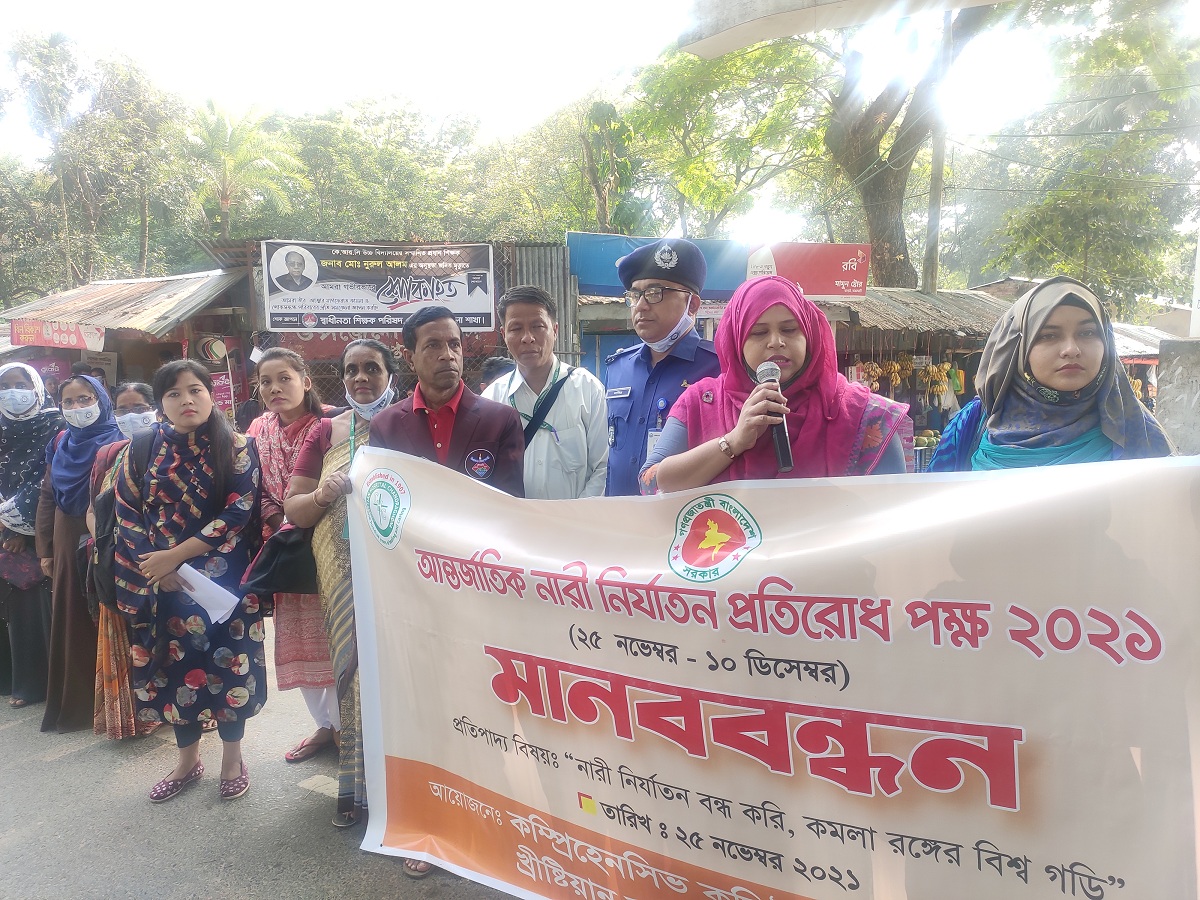 আন্তর্জাতিক নারী নির্যাতন প্রতিরোধ পক্ষ উপলক্ষে কাপ্তাইয়ে মানববন্ধন কর্মসূচি পালিত হয়েছে। বৃহস্পতিবার চন্দ্রঘোনা খ্রিষ্টিয়ান হাসপাতালের কমিউনিটি হেলথ প্রোগামে এই মানববন্ধনের আয়োজন করে।
