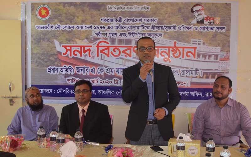 প্রধান অতিথির বক্তব্যে রাঙামাটির জেলা প্রশাসক একেএম মামুনুর রশিদ বলেন, রাঙামাটিতে অভ্যন্তরীণ যাত্রীর পাশাপাশি প্রতিদিন কাপ্তাই লেক ভ্রমণে প্রচুর পরিমাণে পর্যটক রাঙামাটি বেড়াতে আসে। তাদের নিরাপত্তায় জন্য প্রশিক্ষণ গ্রহণকারীদের কাজ করতে হবে। কারণ আপনারা যদি অতিরিক্ত যাত্রী পরিবহন না করেন, পর্যটকদের বোর্টের ছাদে উঠতে না দেন, তাহলে দুর্ঘটনা অনেকাংশে কমে আসবে।