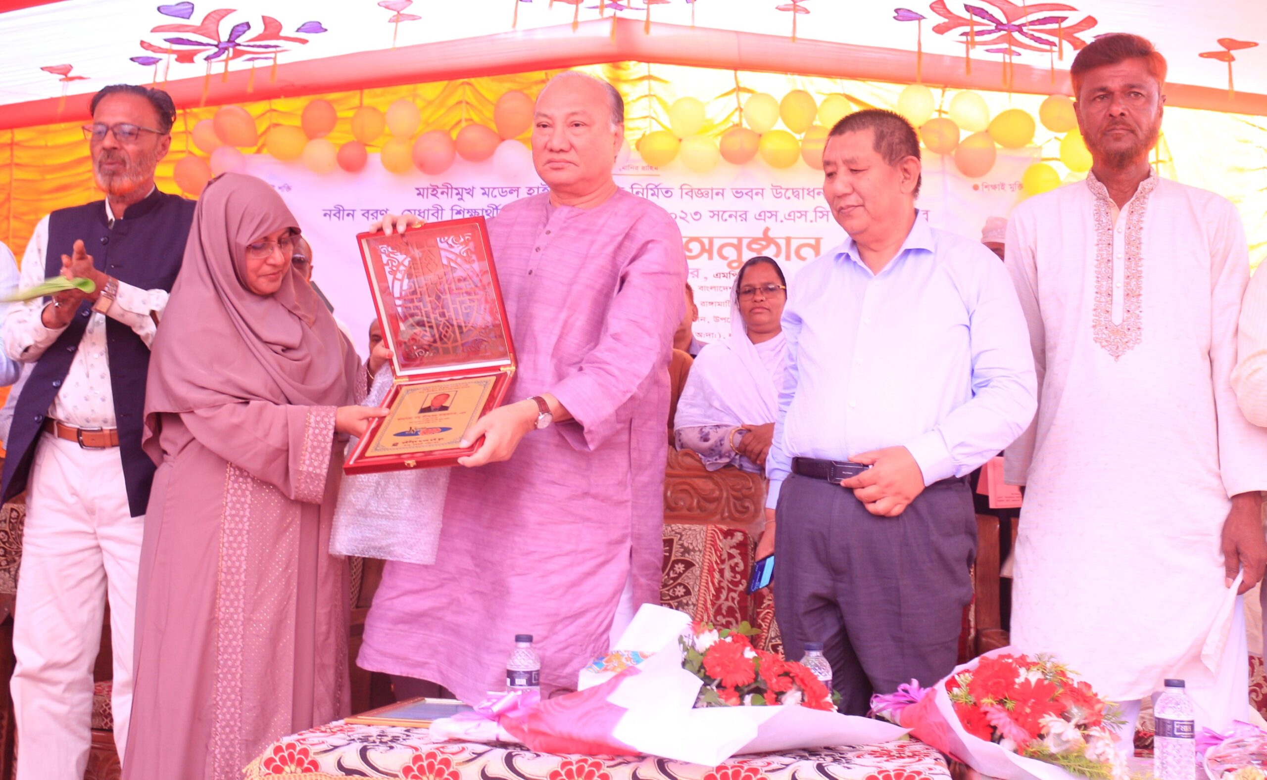 মাইনীমূখ হাই স্কুলের সহকারি প্রধান শিক্ষক তাজ মাহামুদের সঞ্চালনায় অনুষ্ঠানে আরও উপস্থিত ছিলেন জেলা পরিষদের সদস্য আসমা বেগম, উপজেলা পরিষদের ভাইস চেয়ারম্যান মীর সিরাজুল ইসলাম চৌধুরী, মহিলা ভাইস চেয়ারম্যান আনোয়ারা বেগম, লংগদু থানার পরিদর্শক (তদন্ত) সানজিদ আহাম্মেদ, উপজেলা প্রকৌশলী শামছুল আলম, আওয়ামীলীগ নেতা ওয়াশিংটন চাকমা, শহিদুর রহমান সাগর, আব্দুর রহমান হাওলাদার, সুভাষ চন্দ্র দাশ, মুক্তিযোদ্ধা মীর শাহ নেওয়াজ চৌধুরী, সাংবাদিক এখলাস মিঞা খান, মাইনীমূখ ইউনিয়ন পরিষদের চেয়ারম্যান কামাল হোসেন কমল, আটারকছড়া ইউপি চেয়ারম্যান অজয় মিত্র চাকমা, বগাচত্বর ইউপি চেয়ারম্যান আবুল বাশার প্রমূখ।
