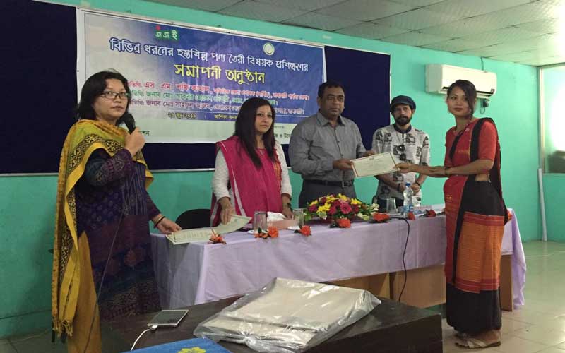 অনুষ্ঠানের শেষে ৫ দিনব্যাপী প্রশিক্ষণে তৈরি বিভিন্ন হস্তশিল্প পণ্য পরিদর্শন করেন অতিথিবৃন্দ।