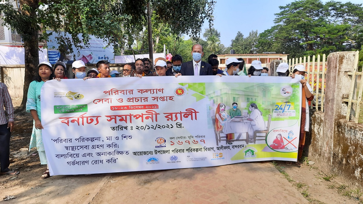 ‘পরিবার পরিকল্পনা, মা ও শিশু স্বাস্থ্যসেবা গ্রহণ করি, বাল্যবিয়ে এবং অনাকাক্সিক্ষত গর্ভধারণ রোধ করি’ এই প্রতিপাদ্যকে সামনে নিয়ে বান্দরবানে পাঁচ দিনব্যাপী নানা কর্মসূচির মধ্য দিয়ে শেষ হয়েছে পরিবার কল্যাণ সেবা ও প্রচার সপ্তাহ।