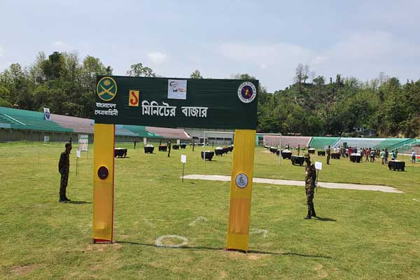 রোববার সকালে বান্দরবান স্টেডিয়ামে করোনার প্রাদুর্ভাবে মানুষের সেবা প্রদানের জন্য ২৪পদাতিক ডিভিশনের জিওসি ও চট্টগ্রামের এরিয়া কমান্ডার মেজর জেনারেল এস এম মতিউর রহমান ওএসপি, এএফডব্লিউসি, পিএসসি এর নির্দেশে বান্দরবানের সেনা রিজিয়ণ এর ব্রিগেড কমান্ডার ব্রিগেডিয়ার জেনারল খন্দকার মোঃ শাহিদুল এমরান এ,এফ,ডব্লিউ,সি,পিএসসি, এ বাজারের উদ্বোধন করেন।