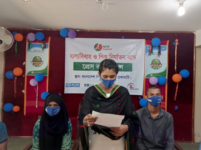 সংবাদ সম্মেলন প্রিয়ন্তী ত্রিপুরা জানান, ‘দেশে দিন-দিন বাল্যবিবাহ, শিশুর প্রতি সহিংসতা, নির্যাতন ও ধর্ষণ বাড়ছে। এনসিটিএফ’র মনিটরিং রিপোর্ট অনুযায়ী, ২০২০ সালের জুন থেকে চলতি বছরের জুলাই পর্যন্ত এই ১৪ মাসে সারাদেশে ৫৮৪ জন শিশু নানাভাবে নির্যাতনে শিকার হয়েছে। এর মধ্যে গত এক বছরে ২৩১ জন শিশু বাল্যবিবাহের শিকার হয়েছে।’