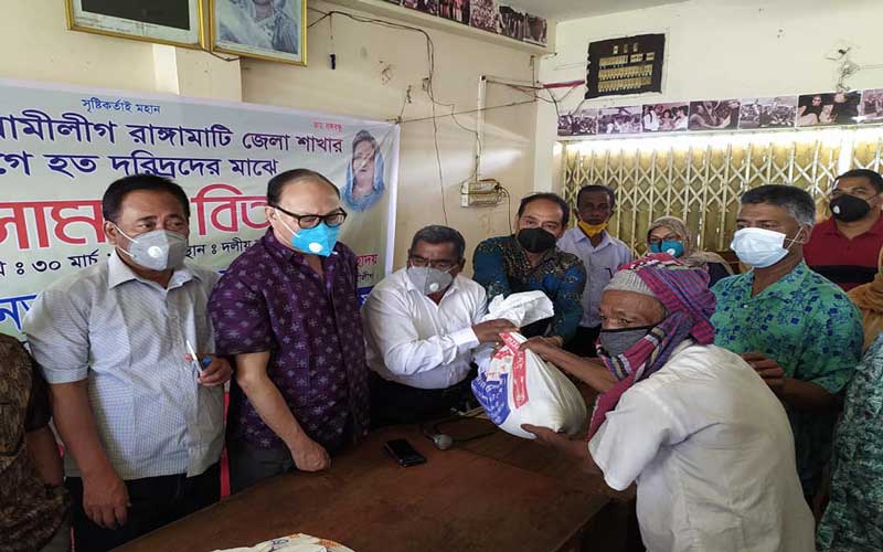 সকাল দশটায় জেলা আওয়ামীলীগ কার্যালয়ে রাঙামাটি শহরের হত দরিদ্র মানুষের জন্য জেলা,সদর উপজেলা এবং পৌর আওয়ামীলীগের উদ্যোগে ত্রান সহায়তা বিতরণ কার্যক্রমের উদ্বোধন করেন দীপংকর তালুকদার।