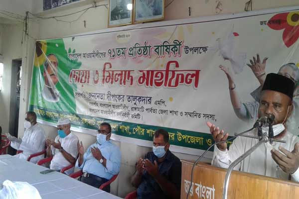 করোনা পরিস্থিতির কারণে সীমিত পরিসরে, সামাজিক দূরত্ব ও স্বাস্থ্যবিধি মেনে রাঙামাটিতে ভিন্নমাত্রায় পালিত হলো আওয়ামী লীগের প্রতিষ্ঠাবার্ষিকী।দেশের এই প্রাচীন রাজনৈতিক দলটির ৭১তম প্রতিষ্ঠাবার্ষিকী উপলক্ষে রাঙামাটি জেলা আওয়ামী লীগ এ উপলক্ষে দোয়া ও মিলাদ মাহফিলের আয়োজন করে।