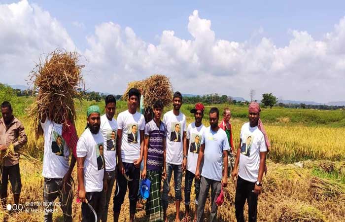 শুক্রবার দুপুরে মাইনী জারুল বাগান এলাকায় মো. নাছিরের দেড় বিঘা ধান কেটে বাড়ি পৌঁছে দেয় তারা।