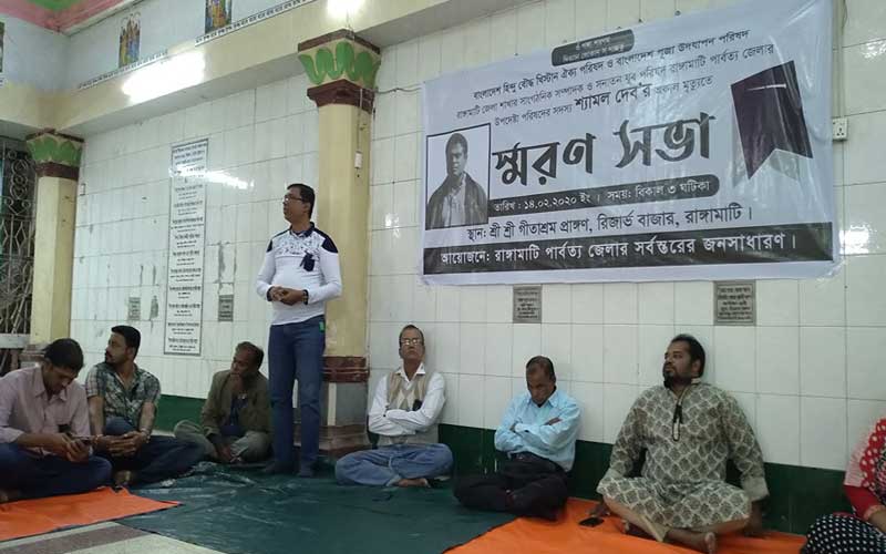 বাংলাদেশ হিন্দু বৌদ্ধ খ্রিষ্টান ঐক্য পরিষদ রাঙামাটি জেলার সভাপতি ডা. শিব প্রসাদ মিশ্র’র সভাপতিত্বে এসময় অন্যান্যদের মাঝে বক্তব্য রাখেন, বাংলাদেশ হিন্দু বৌদ্ধ খ্রিষ্টান ঐক্য পরিষদ রাঙামাটি জেলার সহ-সভাপতি দীপন ঘোষ, ওয়ার্ল্ড পীস এন্ড হিউম্যান রাইটস সোসাইটি রাঙামাটি জেলার সভাপতি শিক্ষক অরূপ মুৎসুদ্দী, বাংলাদেশ পুজা উদযাপন পরিষদ রাঙামাটি জেলার সাধারণ সম্পাদক পঞ্চানন ভট্টাচার্য, সনাতন যুব পরিষদ রাঙামাটি জেলার সাংঠনিক সম্পাদক জুয়েল দে, সনাতন যুব পরিষদ পৌর শাখার সাধারণ সম্পাদক উজ্জ্বল চৌধুরী, শিতলা মন্দিরের সম্পাদক অজিত দে, সংগঠক দেবু দে প্রমুখ।