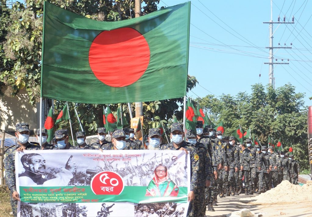 ১৯৭১ সালের মহান মুক্তিযুদ্ধের মাধ্যমে অর্জিত স্বাধীনতার ৫০ বছর পূর্তি উপলক্ষে পতাকা প্রদক্ষিণ ও র্যালি করেছে বাংলাদেশ আনসার ও গ্রাম প্রতিরক্ষা বাহিনী। রাঙামাটির লংগদুতে বুধবার সকালে আনসার ও গ্রাম প্রতিরক্ষা বাহিনীর আয়োজনে ৩৬ ব্যাটালিয়ন সদর দপ্তর থেকে এক বর্ণাঢ্য র্যালি বের করা হয়। স্বাধীনতা অর্জনের ৫০ বছরের গৌরবোজ্জ্বল ইতিহাসকে ধারণ করে ৫০টি লালসবুজ পতাকা ৫০জন আনসার সদস্য বহন করে র্যালিতে অংশ নেয়। এরপর র্যালিটি ৫০ মিনিটব্যাপী উপজেলার প্রধান প্রধান সড়ক প্রদক্ষিণ শেষে সদর দপ্তরে এসে মিলিত হয়।