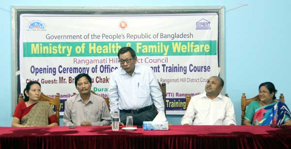 রাঙামাটিতে স্বাস্থ্য বিভাগের অফিস সহকারীদের অফিস পরিচালনায় কাজের গতি বাড়ানোর লক্ষ্যে ৫দিনব্যাপী অফিস ম্যানেজমেন্ট প্রশিক্ষণ কর্মশালা শুরু হয়েছে। রোববার রাঙামাটি পরিবার কল্যাণ পরিদর্শিকা প্রশিক্ষণ ইন্সটিটিউটে অফিস ম্যানেজমেন্ট প্রশিক্ষণ কর্মশালাটির উদ্বোধন করেন রাঙামাটি পার্বত্য জেলা পরিষদ চেয়ারম্যান বৃষ কেতু চাকমা।
