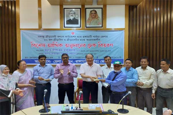 মঙ্গলবার সকালে জেলা প্রশাসনের সম্মেলন কক্ষে পার্বত্য জেলা রাঙামাটি জেলার ৮০ জন ক্রীড়াবিদ ও ক্রীড়াসেবীদের মাঝে করোনাকালীন বিশেষ আর্থিক অনুদান ও চেক প্রদান করা হয়েছে।